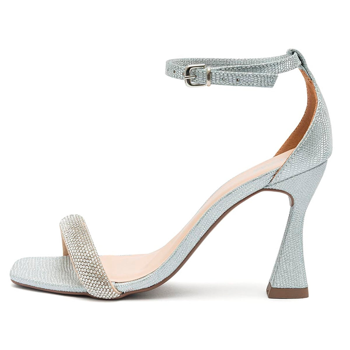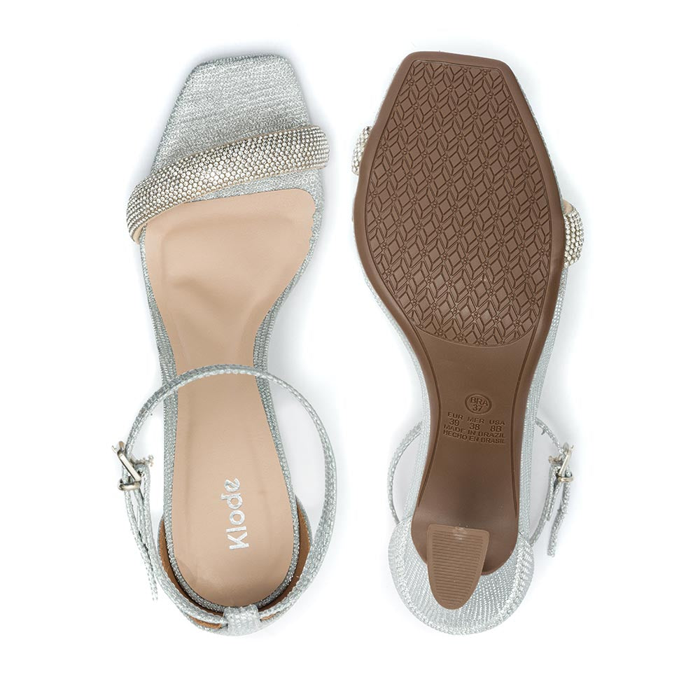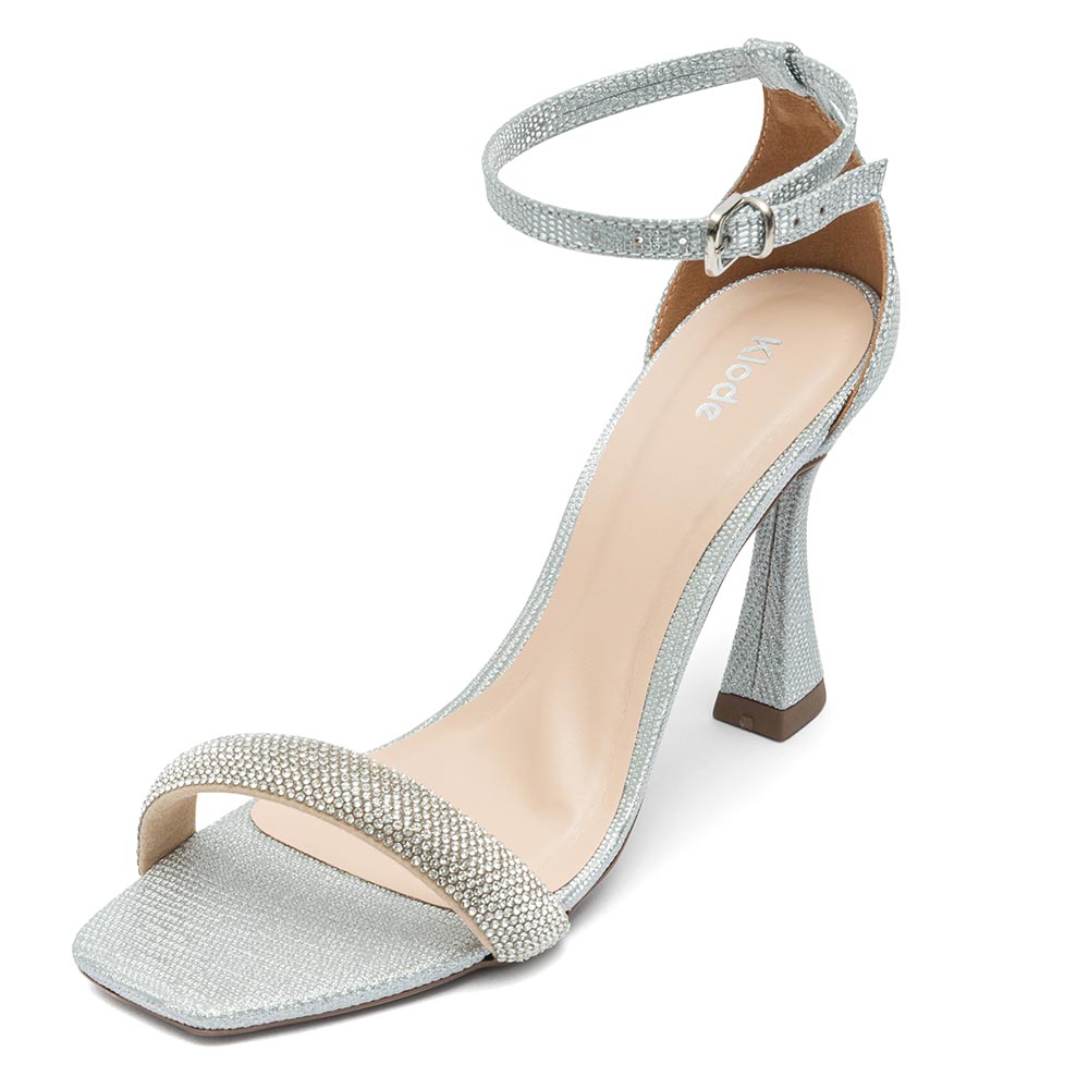 Sandália Femina Salto Alto Taça Klode Prata Brilhante