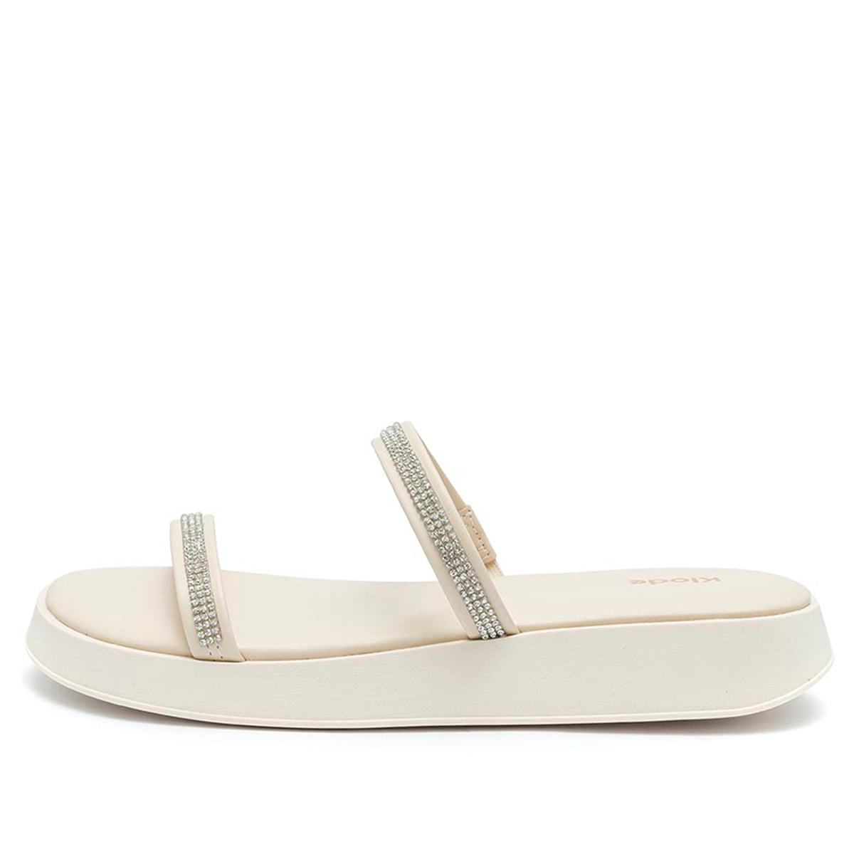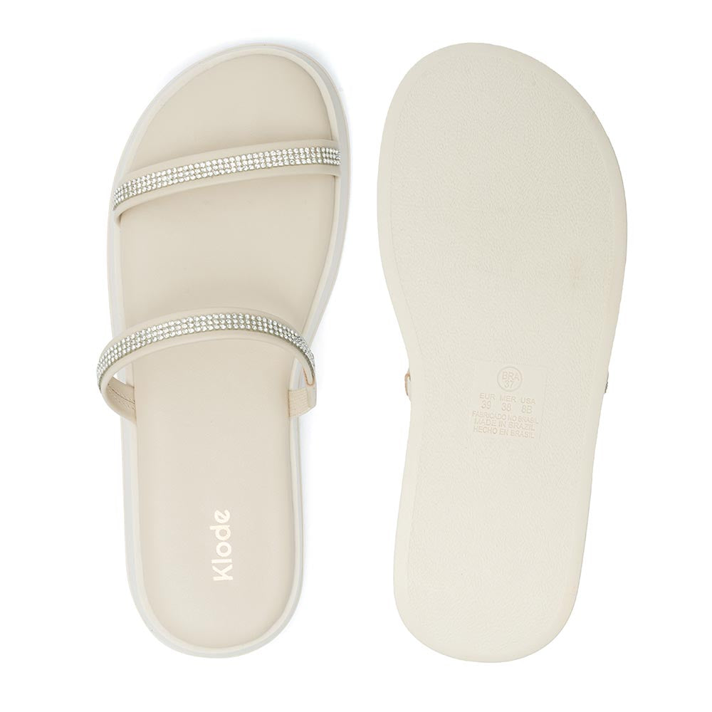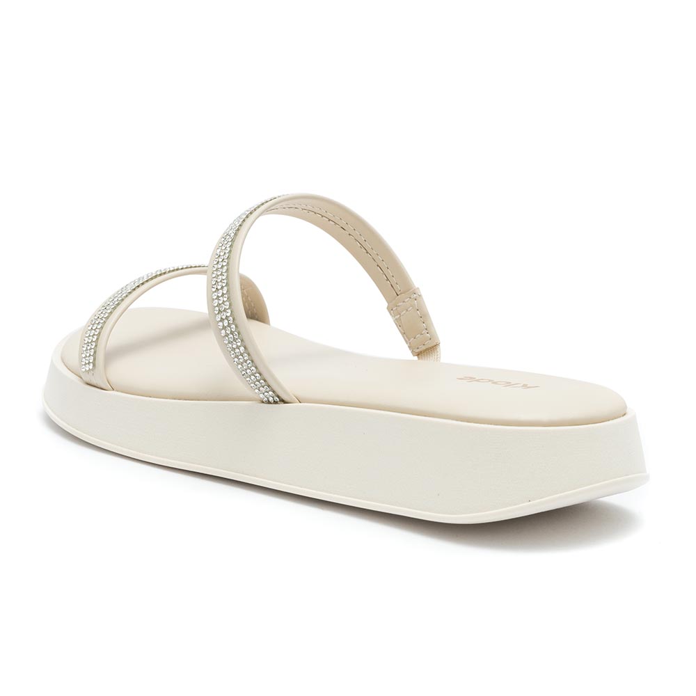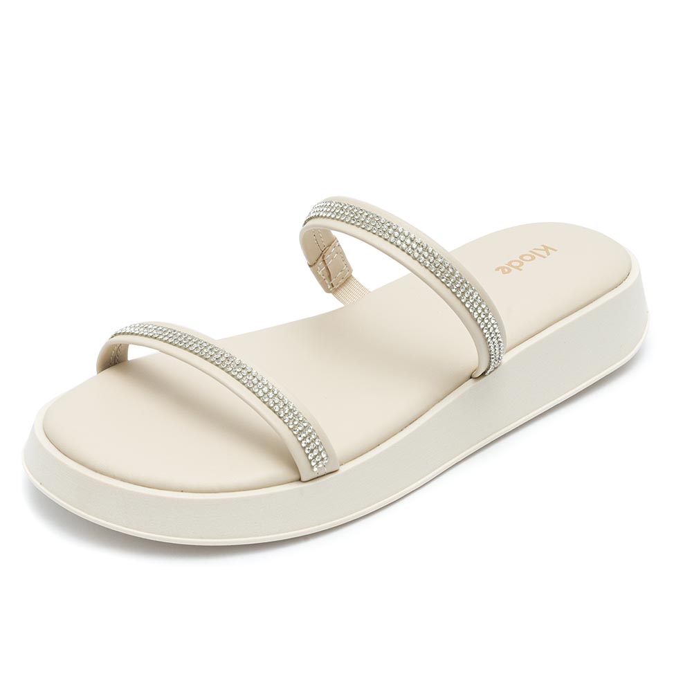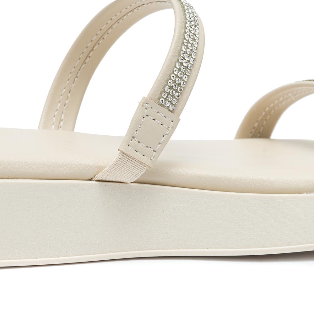 Sandália Feminina Klode Papete Flatform Bege Tiras Brilho Strass