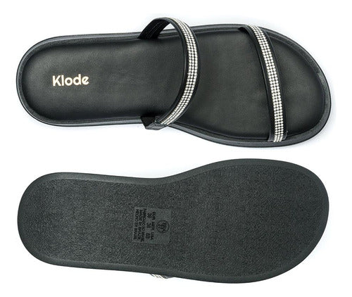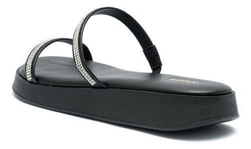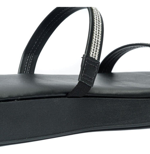 Sandália Feminina Klode Papete Flatform Preta Tiras Brilho