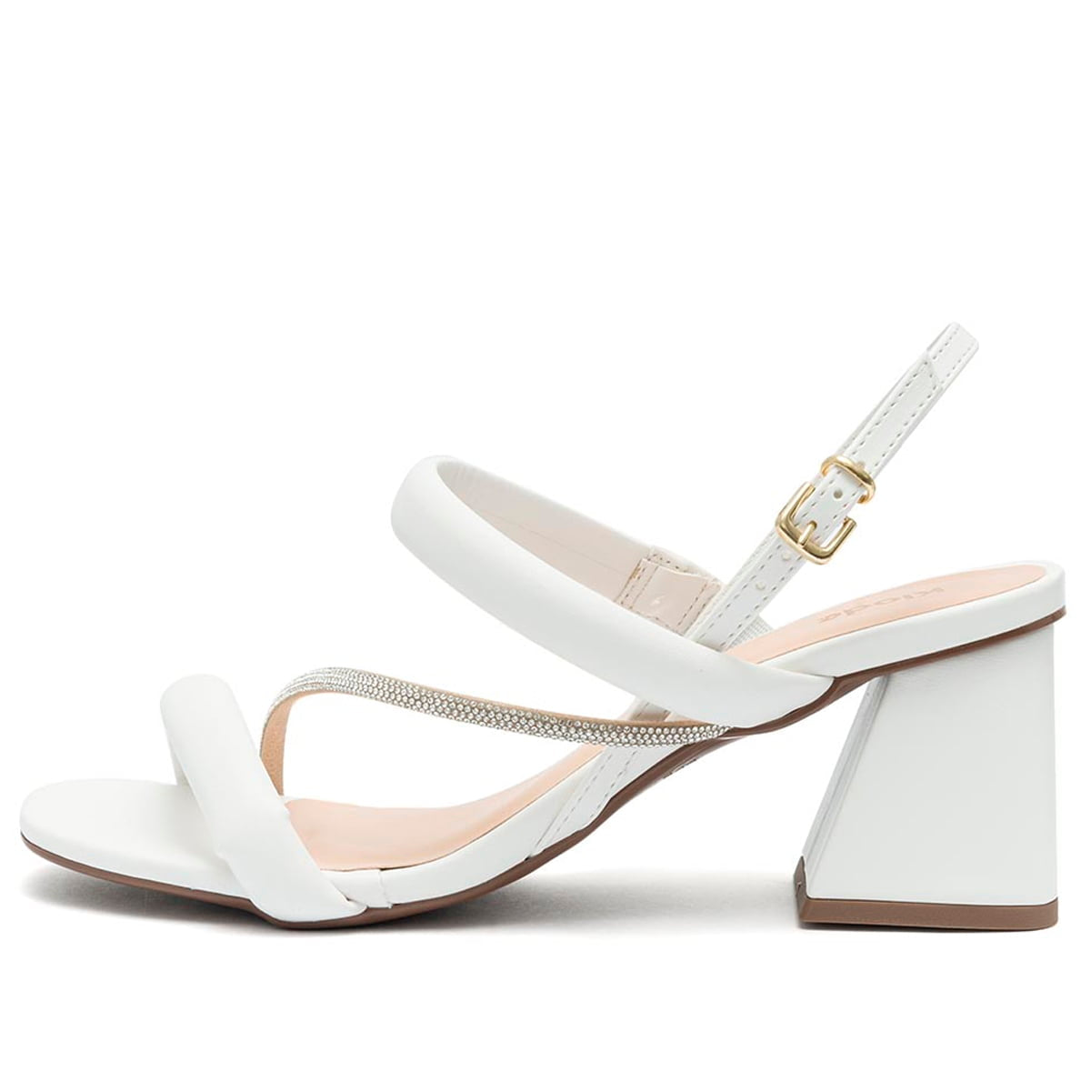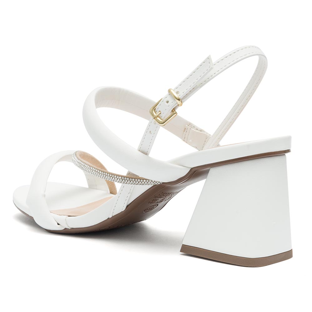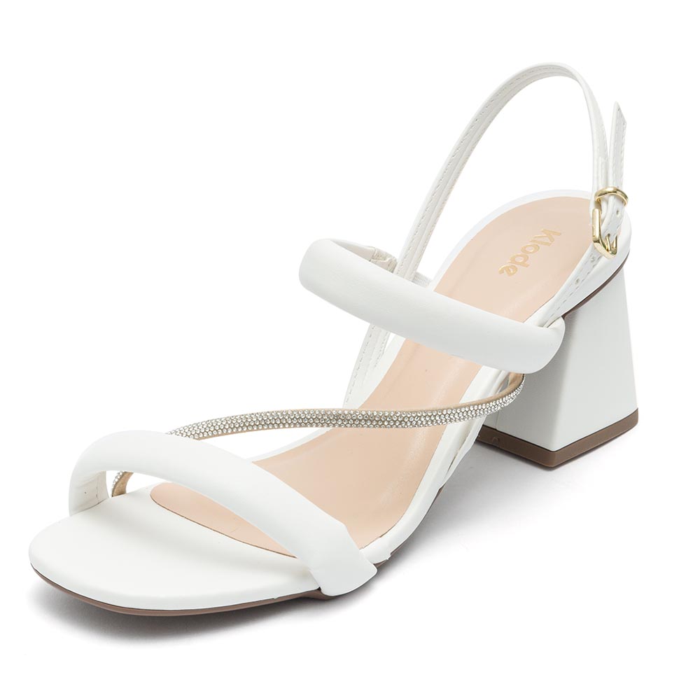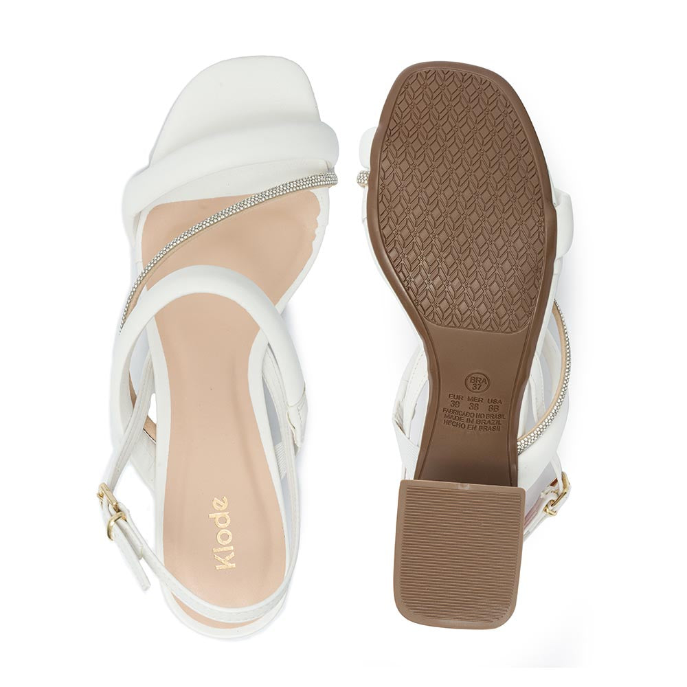Sandália Feminina Klode Salto Grosso Branca Tiras Brilho