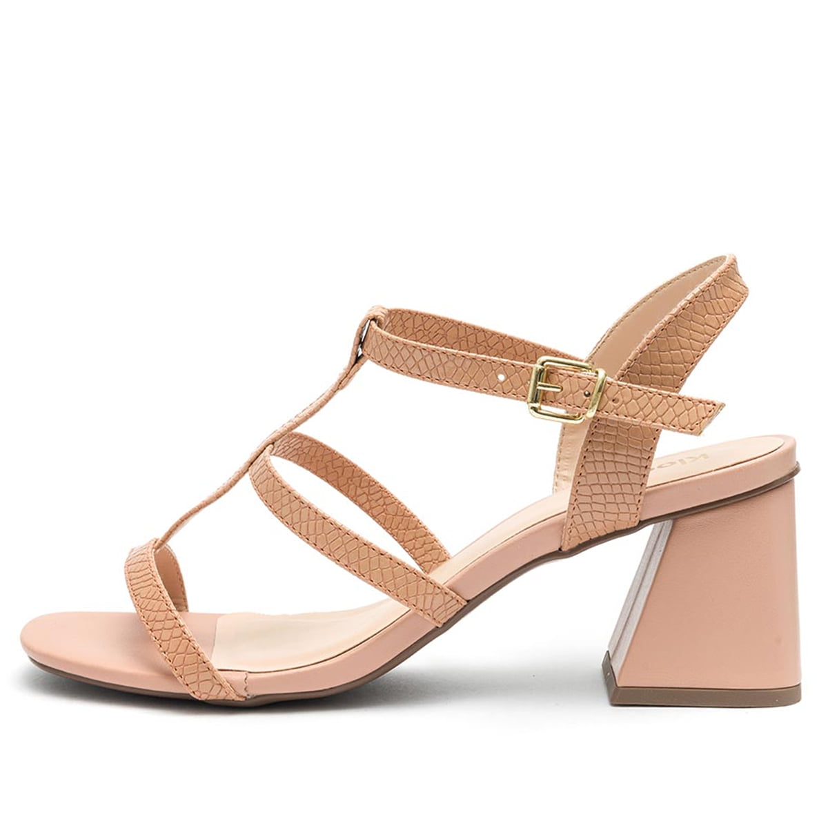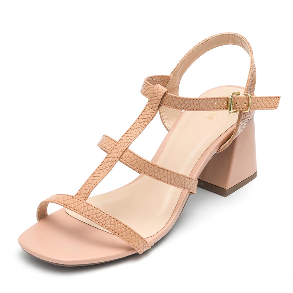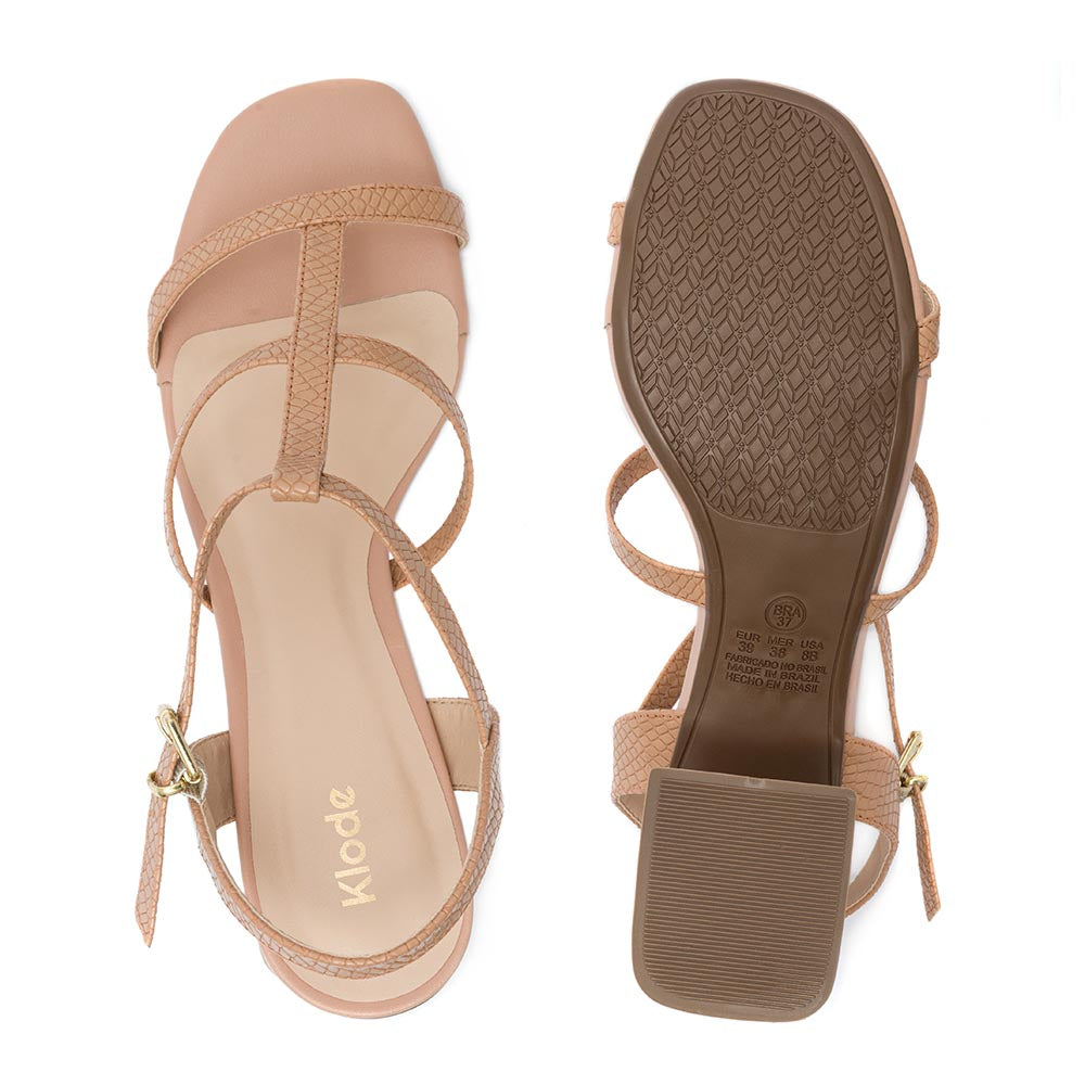 Sandália Feminina Klode Salto Médio Grosso Nude Tiras