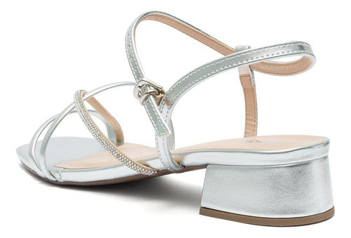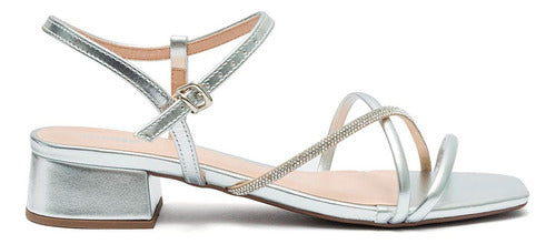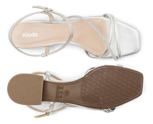 Sandália Feminina Klode Salto Médio Grosso Prata