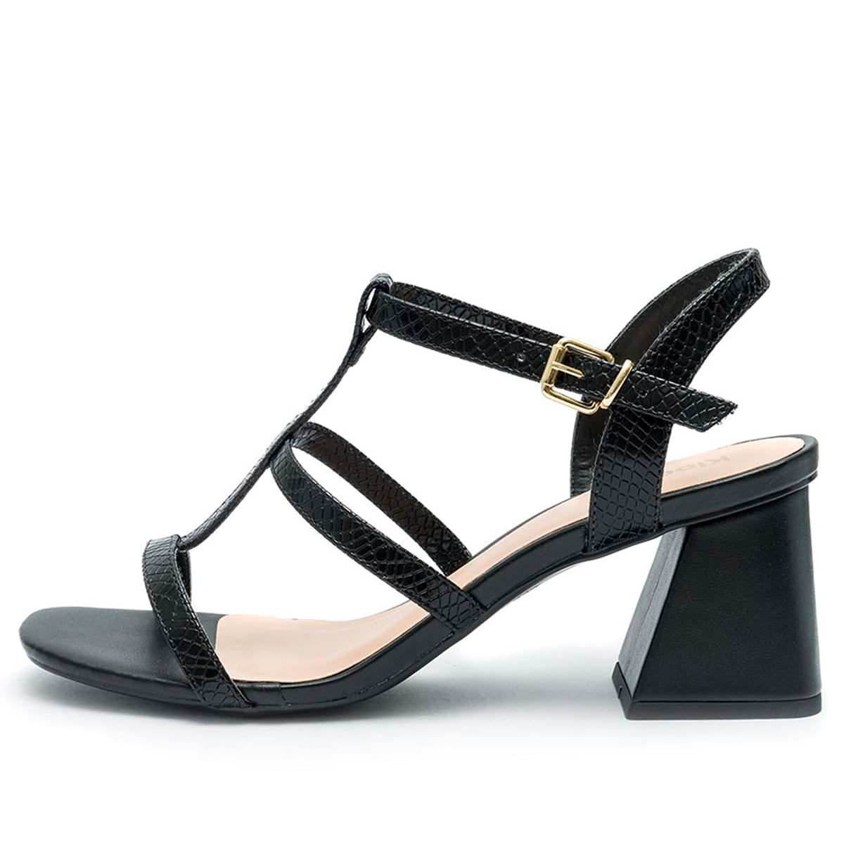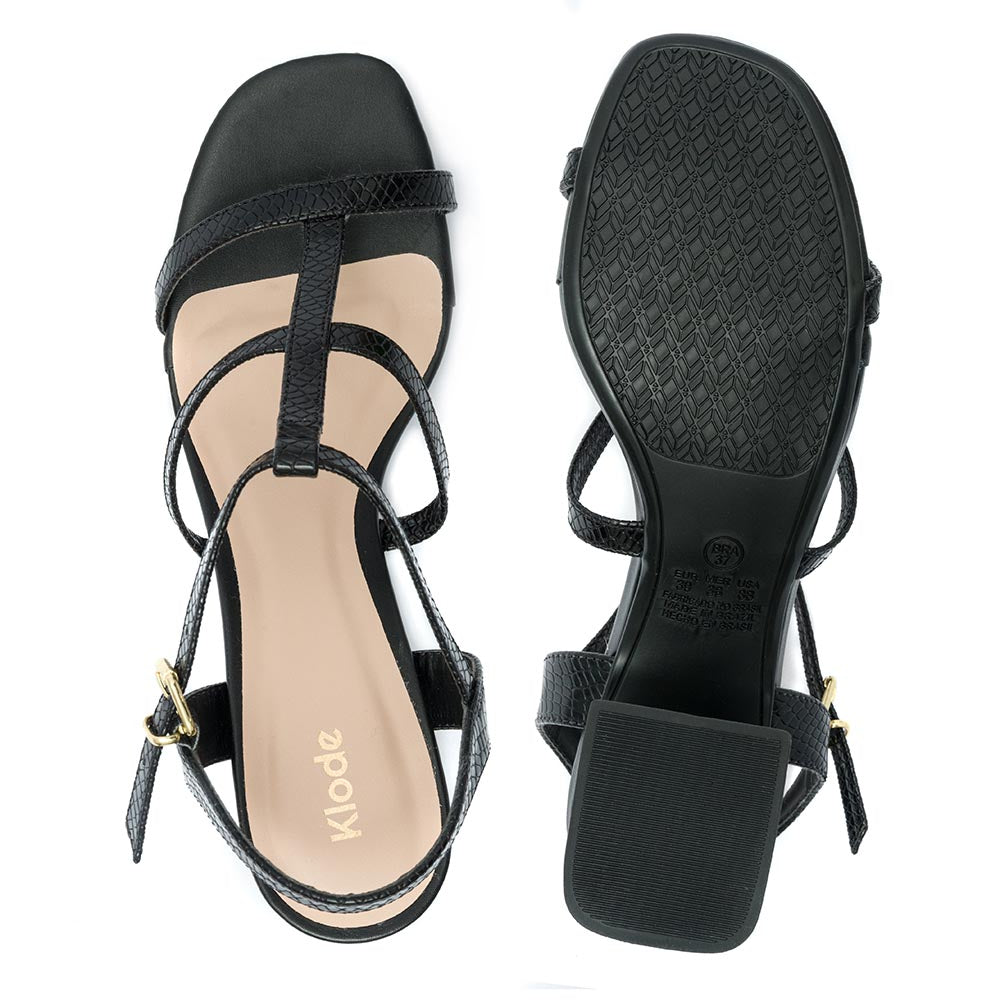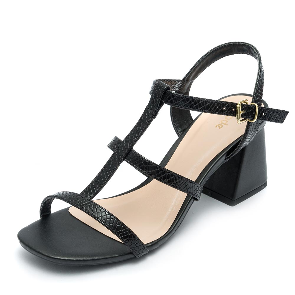 Sandália Feminina Klode Salto Médio Grosso Preta Tiras