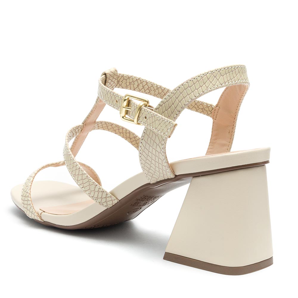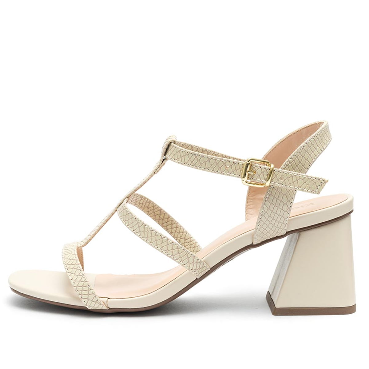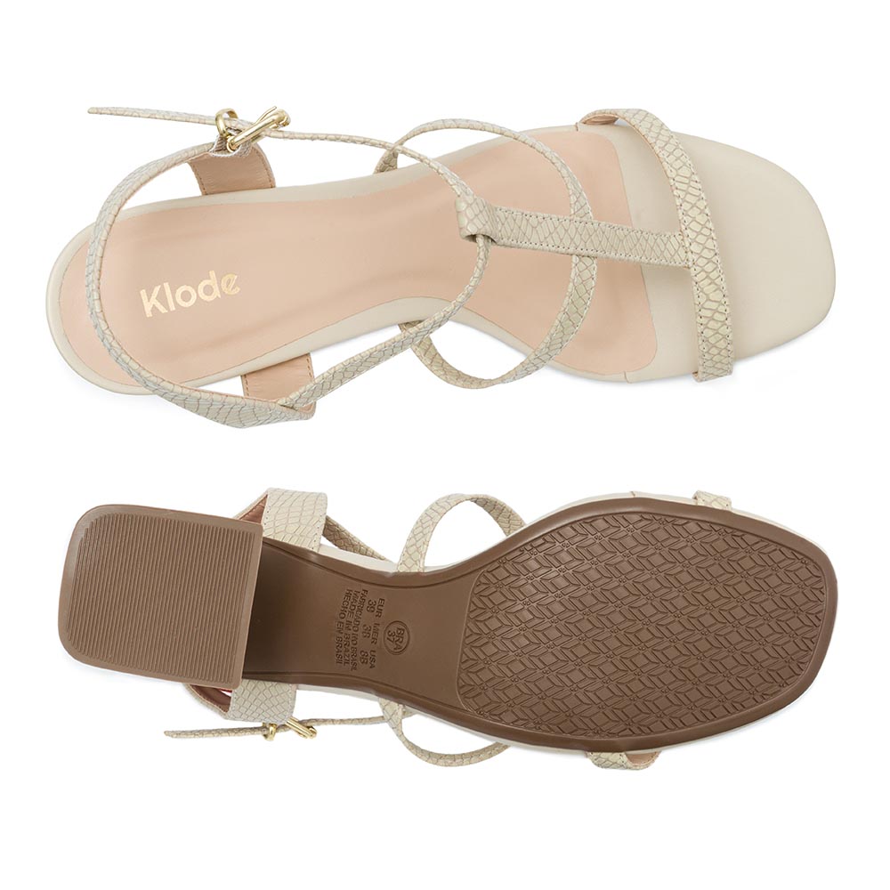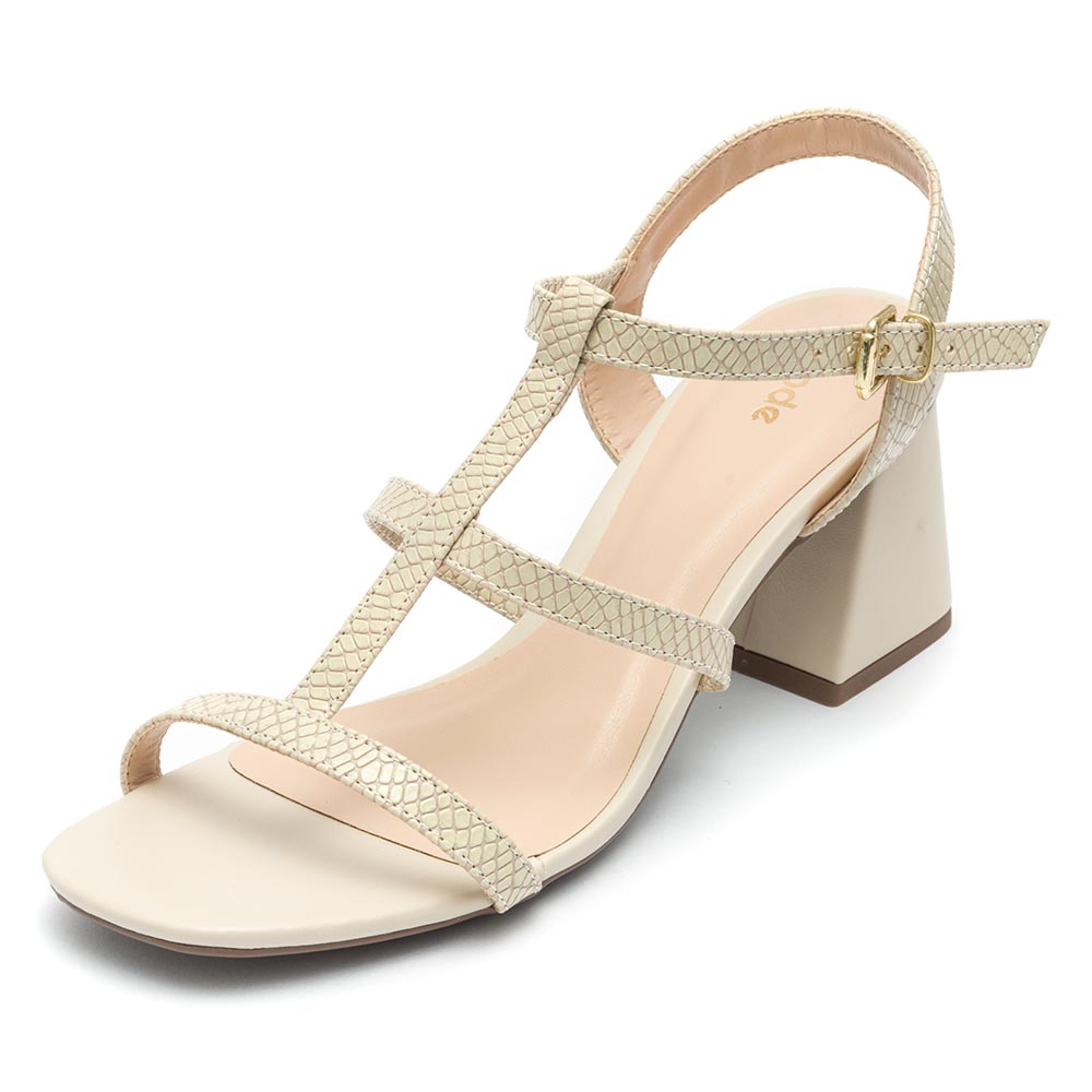 Sandália Feminina Klode Tiras Salto Grosso Bege