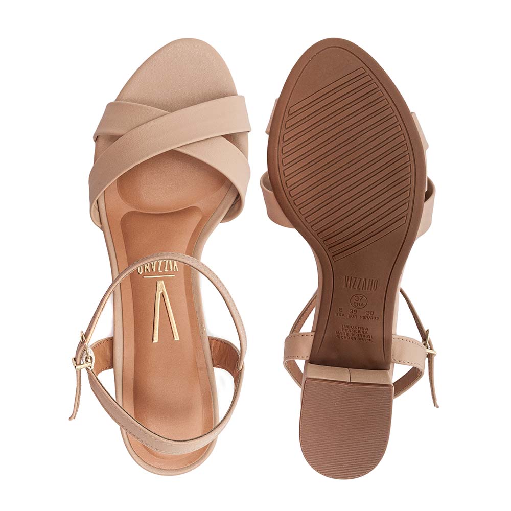 Sandália Feminina Vizzano Transpasse Salto Médio Grosso Bege