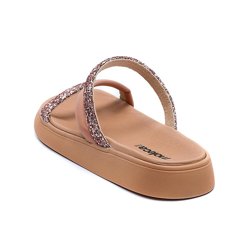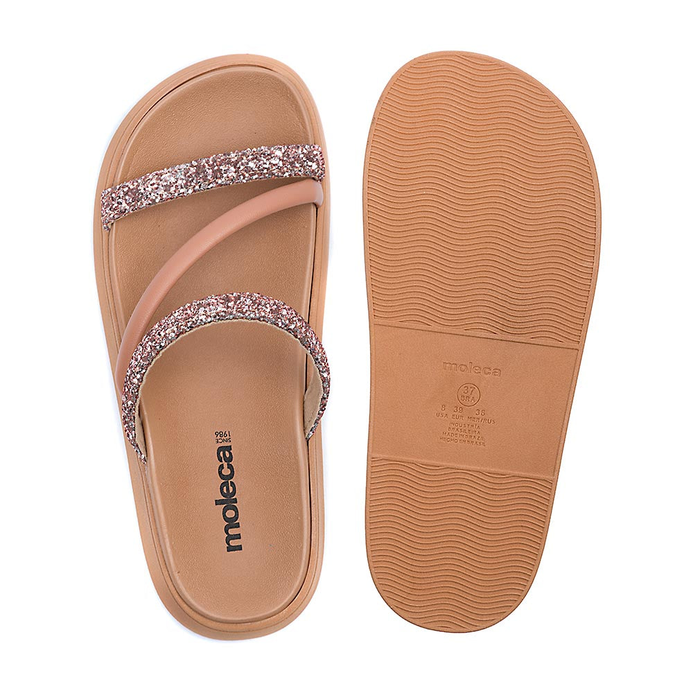 Sandália Papete Feminina Moleca Nude Tiras Strass Ouro Rosado Pron Maxxi Glitter