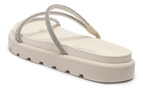 Sandália Papete Feminina Vizzano Flatform Off White Brilho