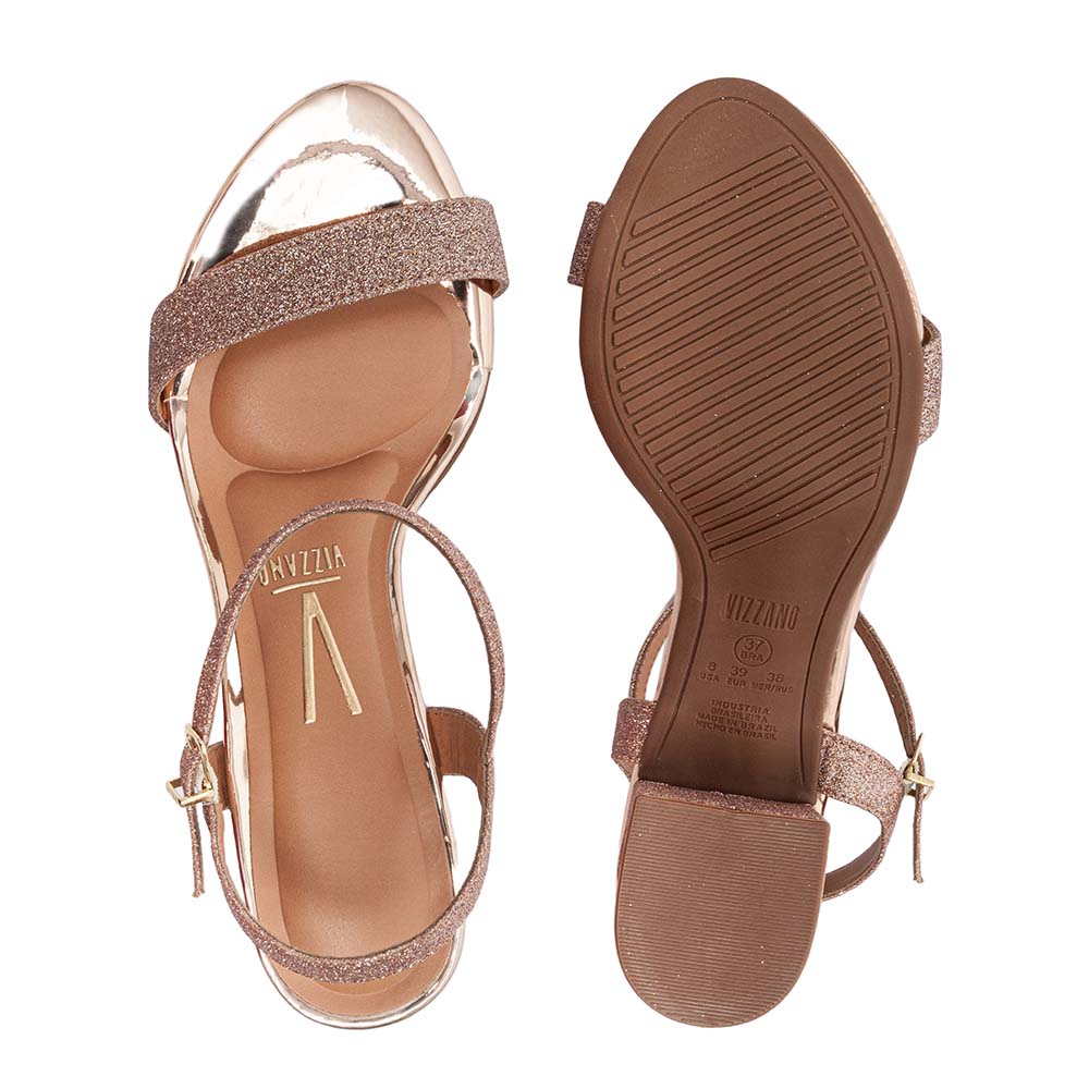 Sandália Vizzano Salto Grosso Ouro Rosado Feminina